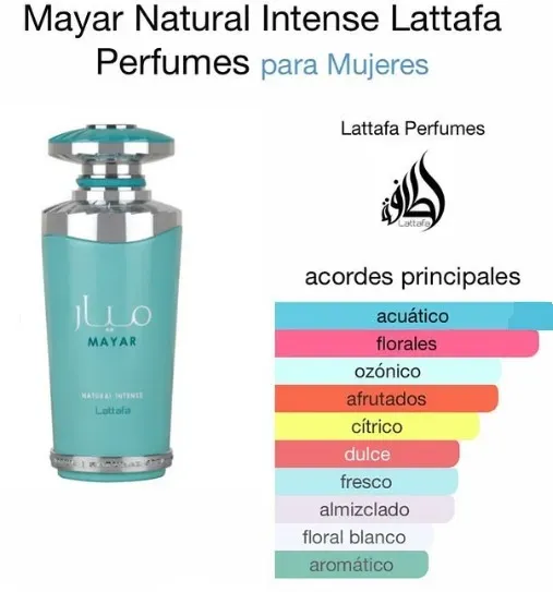 Mayar Natural Intense de Lattafa es una fragancia exquisita que combina notas frescas y amaderadas para crear una experiencia intensamente natural. Perfecta para mujeres que buscan un aroma duradero y sofisticado. ¡Descubre la magia de Mayar Natural Intense hoy mismo!